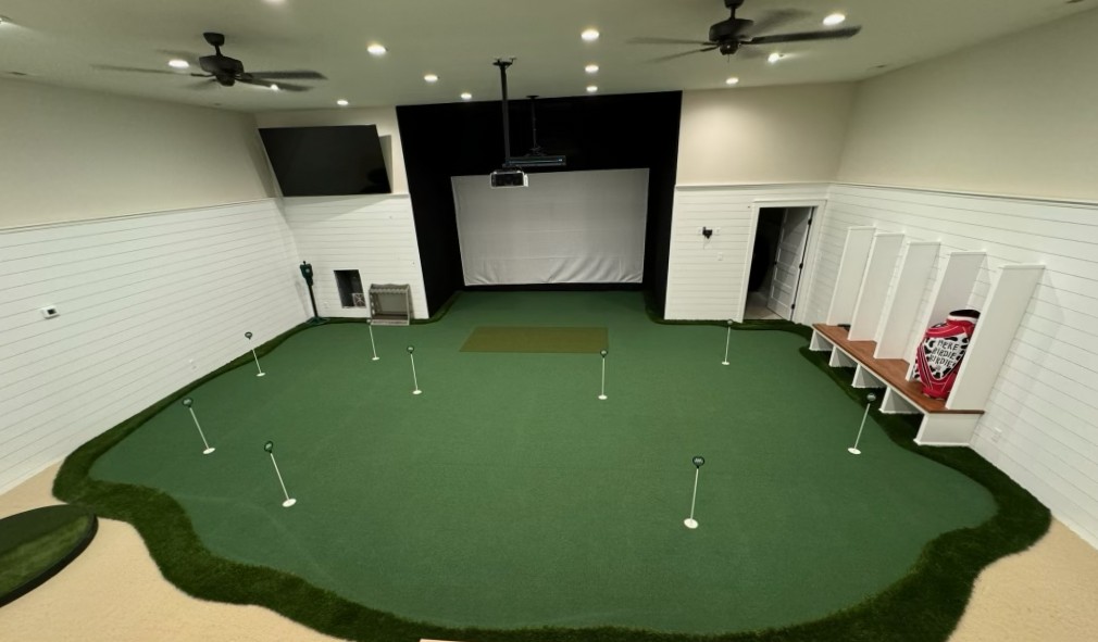 A common issue with golf rooms is the limitation of space from the front of the room to the back.