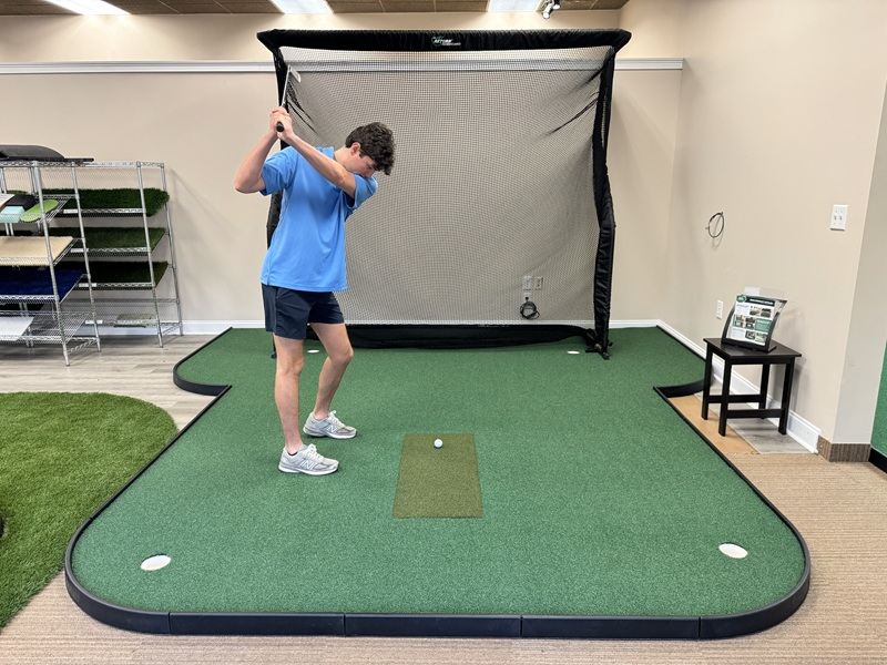The Tee to Green standard model sim green allows room for walkways, in-swinging doors or computer stands alongside the green, providing flexible space planning.
